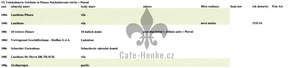 5. 10 dalších domů neidetifikováno, pravděpodobně Plavno nebo Jößnitz